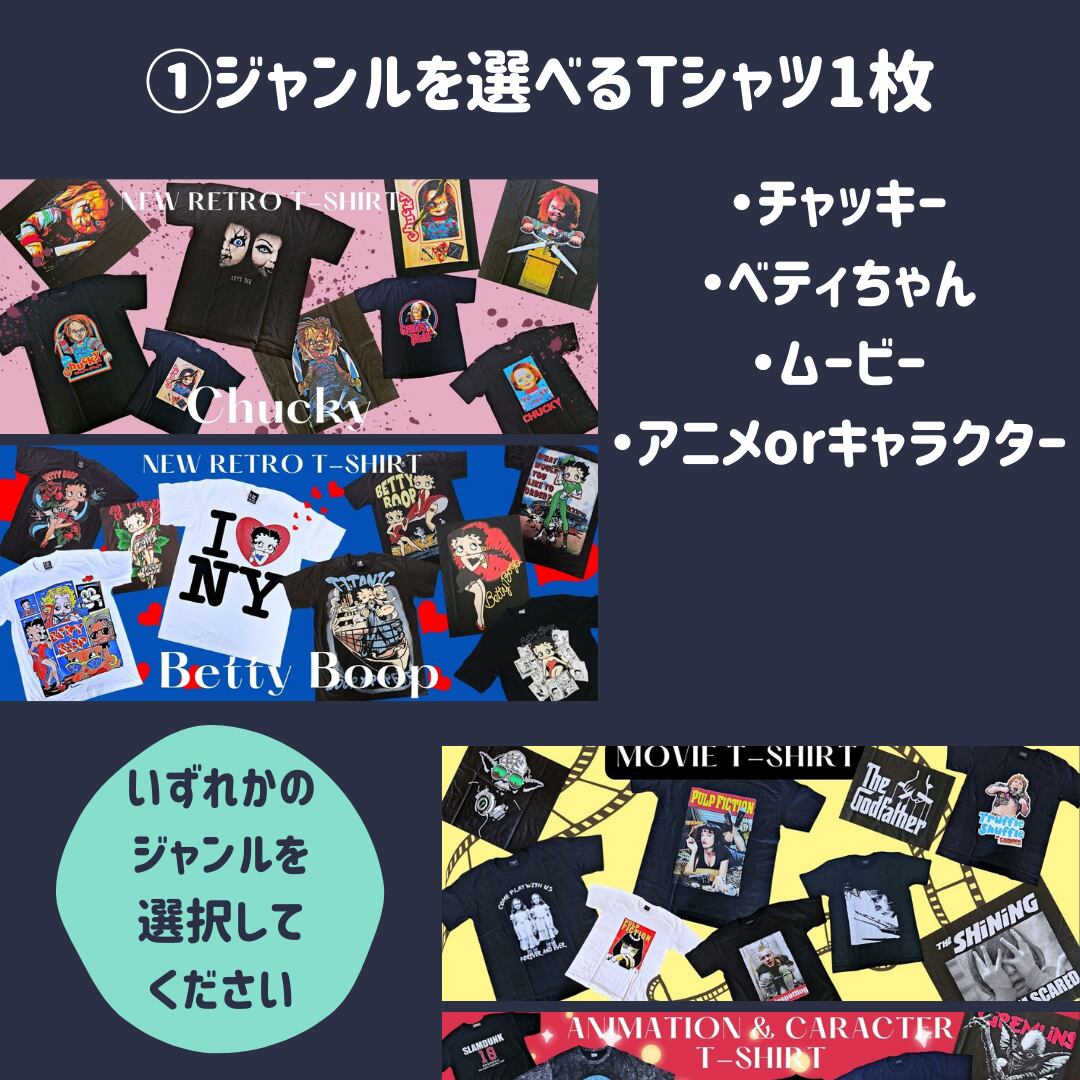 ①ジャンルを選べるTシャツ1枚(新品)