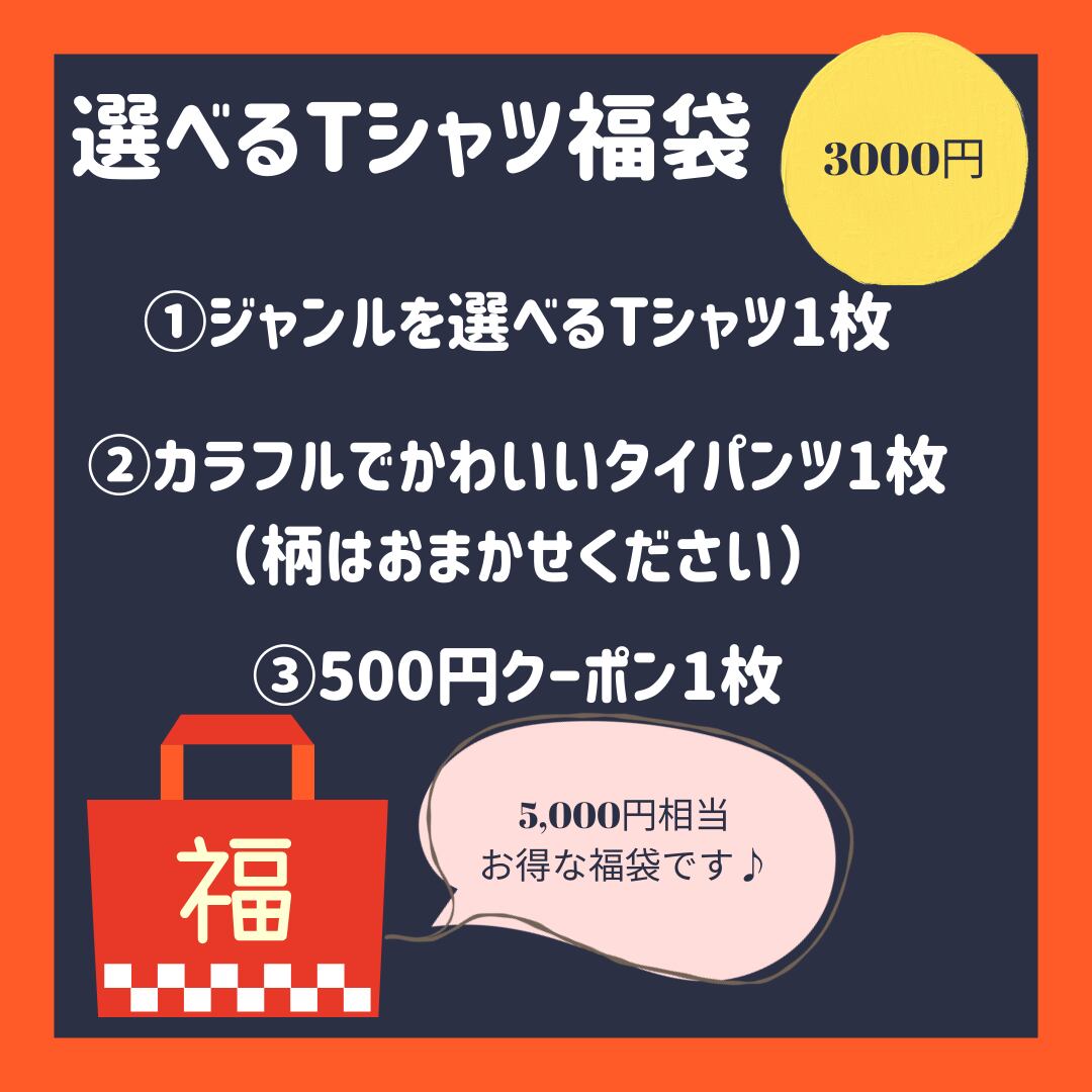 【福袋3,000円】数量限定★選べるTシャツ&タイパンツ&500円クーポンの3点セット お得なハッピーバッグ
